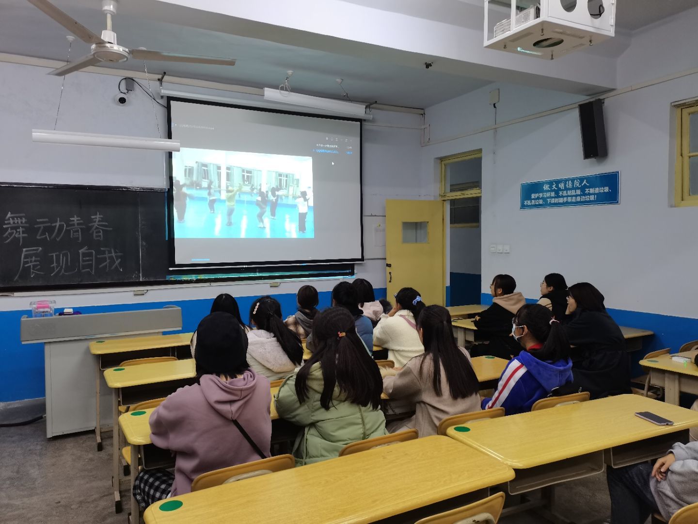 活动伊始,活动负责人讲解四个八拍的要领并示范。训练过程中,负责人进行一到四个八拍的针对性教学,组织同学们由慢到快进行训练。同学们积极参与,认真听讲并练习动作,充分展现大家对健美操的热爱。活动后期,同学将四拍进行贯通,体现学生良好的协调性和配合性,最后负责人回放健美操的排练视频进行点评。