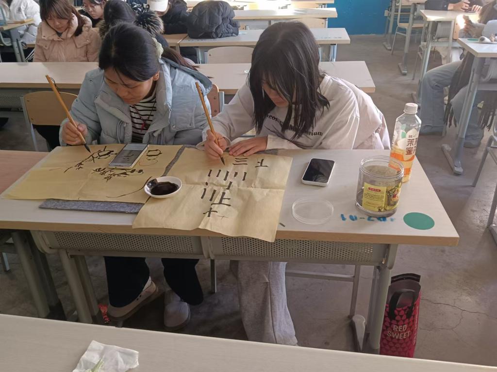 为引领同学们深入领略中国传统文化的独特魅力与深厚价值,增强对民族文化的认同感与自豪感,伟德国际1946源于英国于12月8日在知行楼书画教室举办“书画映心语,墨香传真情”书画学习活动。