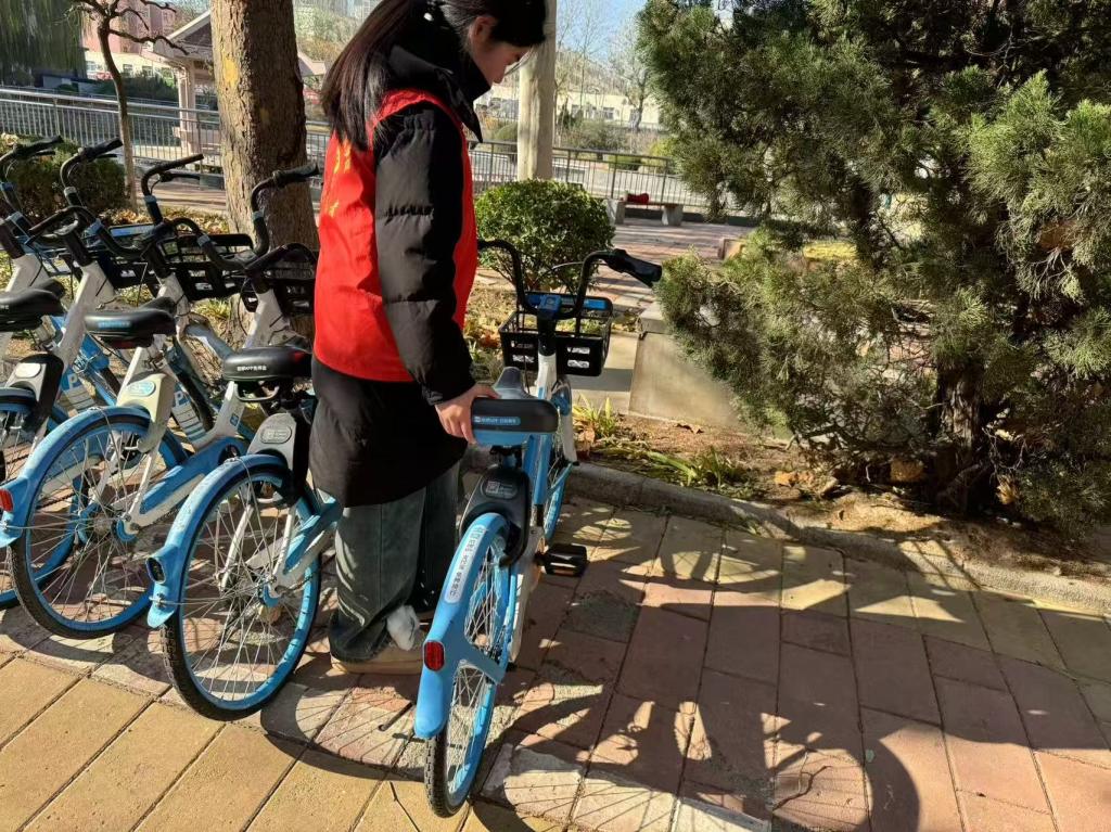 活动伊始,同学们完成分组后,迅速明确了各自职责与负责区域,便开始进行自行车整理摆放。同学们穿梭于校园各处,将横七竖八停放的自行车一一搬运至指定停车区域,排列整齐,使原本混乱的停车点变得井然有序,不仅方便了同学们的取用,也美化了校园环境。同学们还对自行车的停放进行了引导宣传,他们在校园主干道、教学楼附近等人流密集处设立“文明停车引导点”。同学们手持指示牌,友好地提醒过往同学规范停车,并为同学们详细讲解了有序停放自行车对校园交通顺畅与安全的重要性,倡导大家从小事做起,共同维护良好的校园秩序。