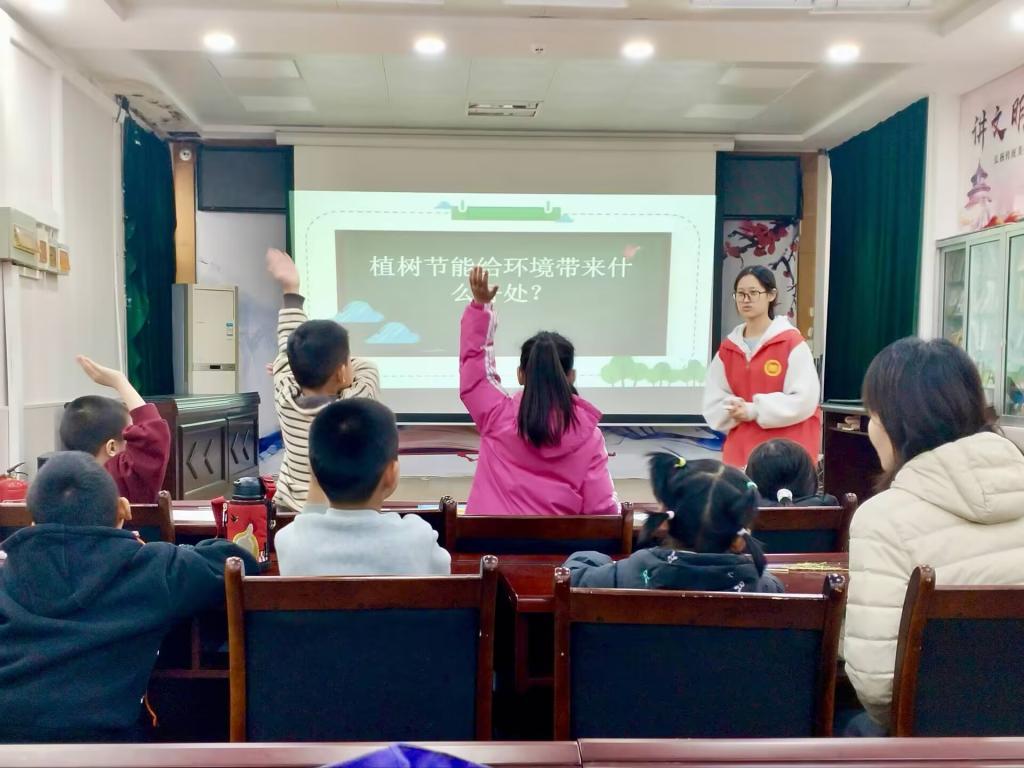 活动伊始,志愿者们通过播放生动有趣的动画短片,向孩子们讲述了雷锋爱护环境、勤俭节约的故事,激发了孩子们对环保的兴趣。随后,志愿者们详细讲解了植物生长的基本知识,并结合实际案例阐述了植树造林对环境保护的重要意义。志愿者还特别设置了绘画环节。孩子们拿起画笔,在纸上描绘出种子从破土而出、长出嫩芽、再到枝繁叶茂的奇妙旅程。他们用五彩斑斓的颜色表达了对自然的想象与热爱,每一幅画都充满了童真与创意,这不仅让孩子们对植物生长有了更直观的认识,也激发了他们对自然科学的浓厚兴趣。活动最后,志愿者们设计了护树小游戏,让孩子们在轻松愉快的氛围中学习如何保护树木、节约资源等环保知识。