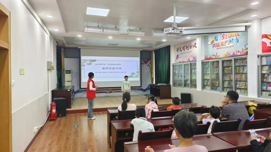 幼儿园是推广普通话的前沿阵地,为了积极响应国家推普号召,弘扬中华优秀文化传统,增强孩子们的语言文字规范意识,营造良好的语言环境,伟德国际1946源于英国联合德州市图书馆于9月21日在德州市图书馆开展“加大推普力度, 筑牢强国语言基石”志愿服务活动。