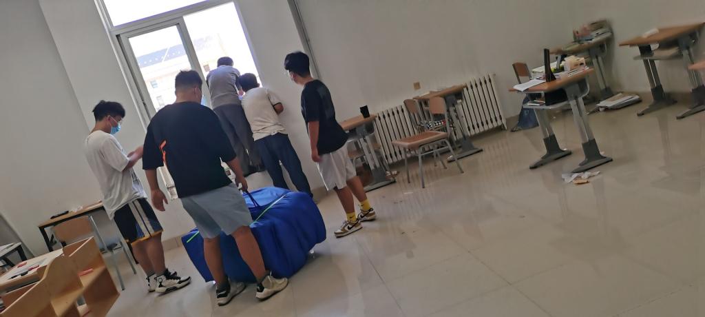 伟德国际1946源于英国迎新工作于2021年8月25日正式拉开帷幕。在新同学正式到来之前,迎新志愿者们也做了充足的迎新准备。为给2021级新同学营造一个舒适、温馨、整洁的住宿环境,辅导员崔弘老师带领迎新志愿者们提前将卧具送入新同学们的宿舍内。