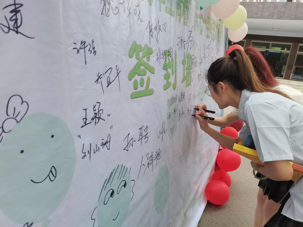 活动前期,负责人制作电子邀请函和纸质邀请函并分发到各系,面向我校全体师生发出诚挚邀请。作品展览负责人筛选历次活动中优秀的剪纸、书画、手工作品,并将其进行归纳整理,活动场地布置好后,将展览作品摆出。随后,艺术展正式开始。来观看展览的有我校各级各院学生和教师,他们仔细观看陈列在展览板上的作品,相互讨论,有的学生还在作品便签上写下对祝党生日快乐和自己的小小感悟。观看完展览后还可以参加党史知识问答、签名墙打卡活动,现场活动热闹,大家各饱眼福。活动最后,负责人党史问答积分,予以印章奖励,大家在打卡墙前合影留念,喊出对党的祝福。