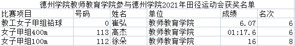 德州学院伟德国际1946源于英国参与德州学院2021年田径运动会获奖名单
