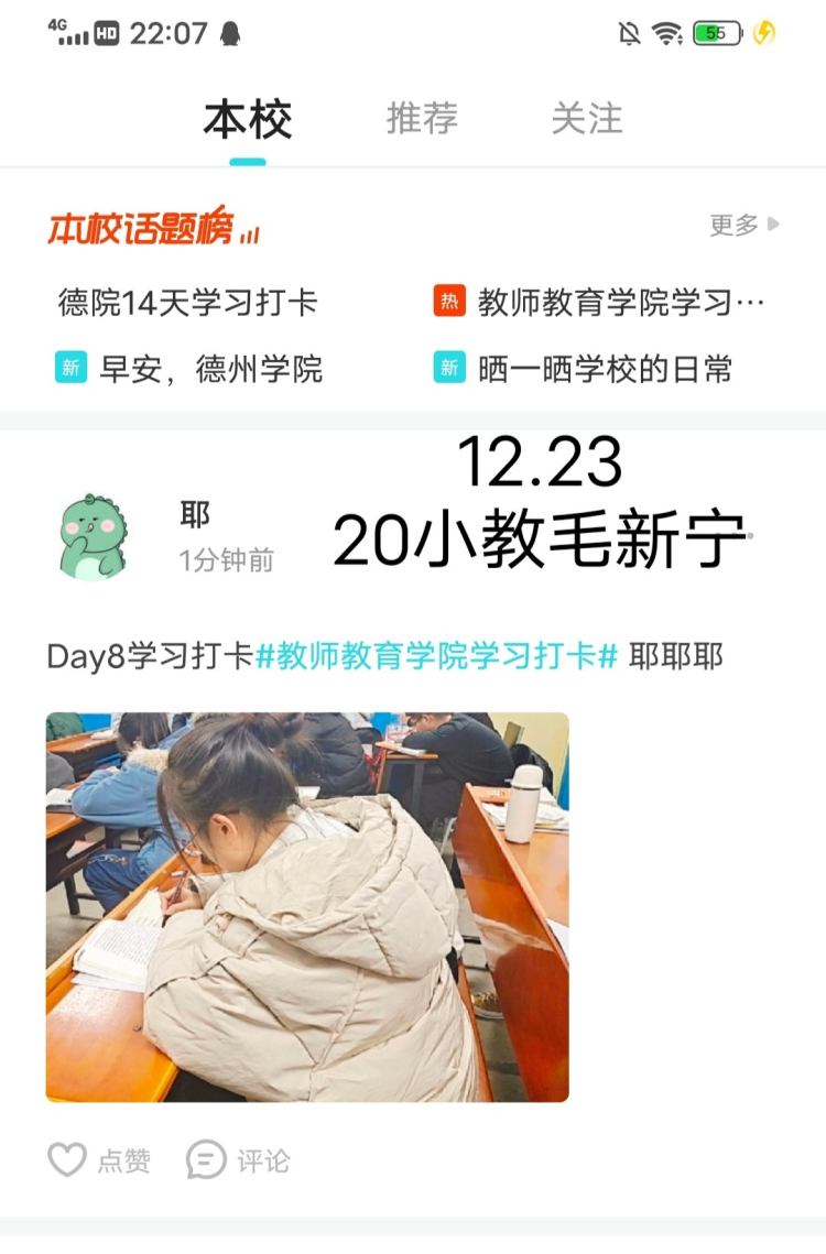 期末考试临近,为帮助学生们养成良好的学习习惯,使同学们以积极地态度投入备考。德州学院伟德国际1946源于英国于2020年12月16日-2020年12月26日在线上平台(今日校园)举办“吾行吾道,虽远必至”考前学习十天打卡活动。
