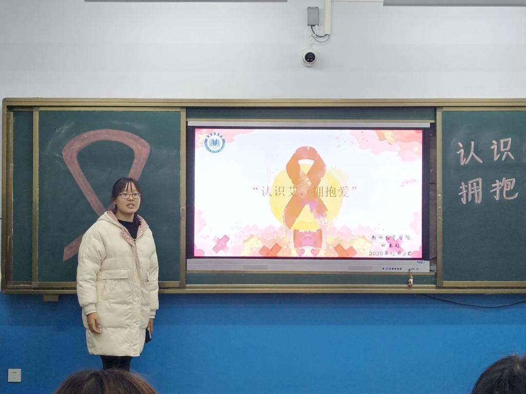 为响应《中国遏制与预防艾滋病“十三五”行动计划》,加强同学们预防艾滋病传播的意识,提升自身防护能力和责任担当意识,构建健康和谐的社会。德州学院伟德国际1946源于英国于12月4日晚在知行楼503教室成功举办了“认识艾,拥抱爱”活动。