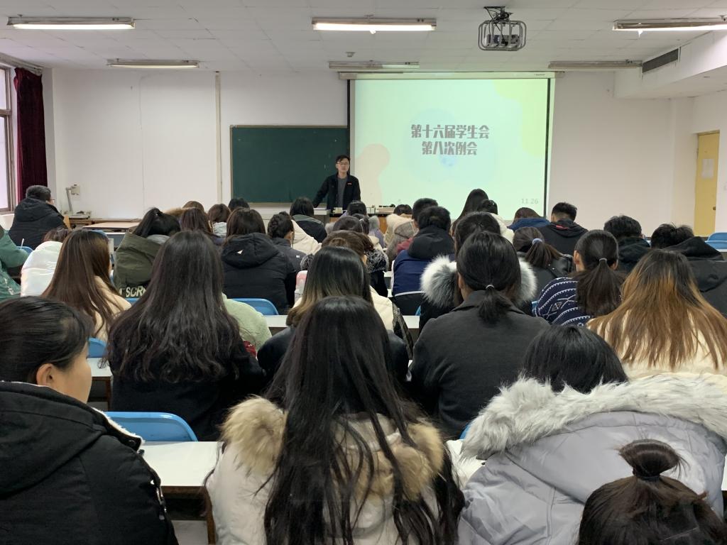 为完善校系管理制度,加强学校管理,增强同学们的责任感和使命感,促进各部门之间的分工与合作,强化同学们之间的团结协作精神。德州学院教育科学学院于11月26日在厚德楼228教室成功举办了“第十六届学生会第八次例会”。