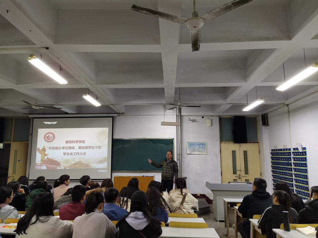 为了响应“不忘初心、牢记使命”主题教育,唤起当代大学生的爱国情怀以及当代大学生对祖国、对民族的自信心、责任心,做好学生会的各项工作,更好地为同学们服务。德州学院教育科学学院于11月19日在美术楼3003教室成功举办了“不忘初心牢记使命,做合格学生干部”学生会工作大会。