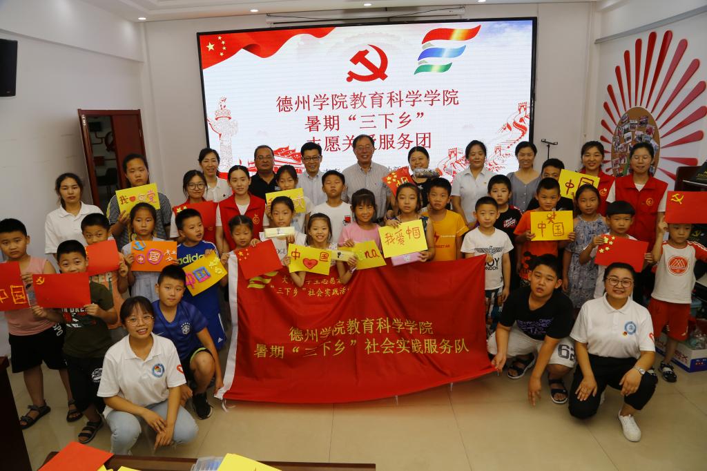 为了深入学习贯彻习近平新时代中国特色社会主义思想,以庆祝中华人民共和国成立70周年、纪念五四运动100周年为契机,引领志愿者树立服务奉献意识和爱国主义意识,用实际行动主动担当历史使命,德州学院教育科学学院于7月18日在德州市东风社区开展暑期“三下乡”‘萤火虫’志愿关爱服务团德州站活动。出席本次活动的领导有德州学院副校长张存峰、德州学院团委书记张月青、副书记丁爱玲、德州学院教育科学学院党总支书记冯立顺、院长王萍及团总支书记闵令珍。