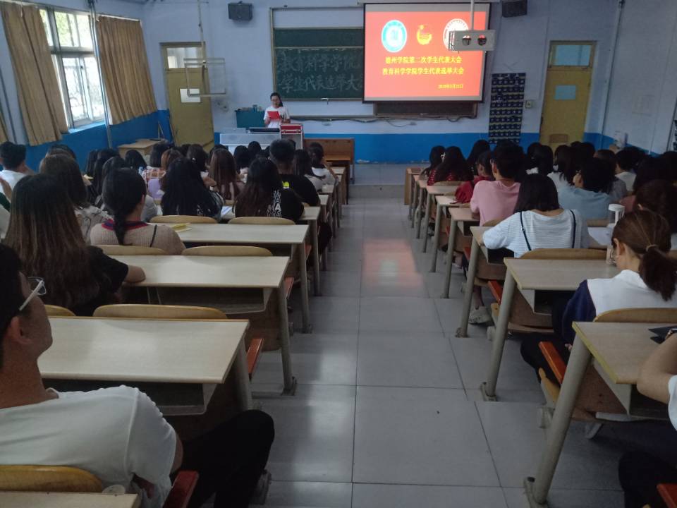 学生代表大会是代表学生的群众组织,是学校联系学生的桥梁和纽带。教育科学学院全力配合德州学院学生代表的选举,真正做到从同学当中来,到同学当中去。为了更好的统调学院学生工作,营造和谐校园。德州学院教育科学学院于5月21日在知行楼123教室召开学生代表选举大会,团总支书记闵令珍老师出席本次大会。