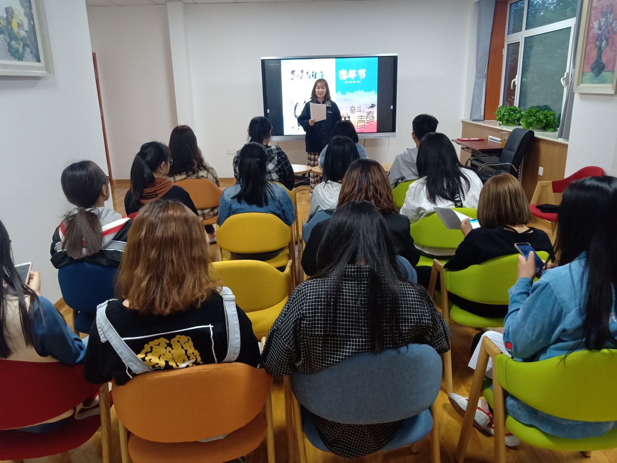 为了加深同学们对五四精神的理解,继承和发扬“爱国、进步、民主、科学”的五四爱国主义精神,号召同学们团结起来为振兴中华民族而努力奋斗。我院于5月5日在知行楼特此举办“畅想青春的梦”五四青年节主题朗诵活动。