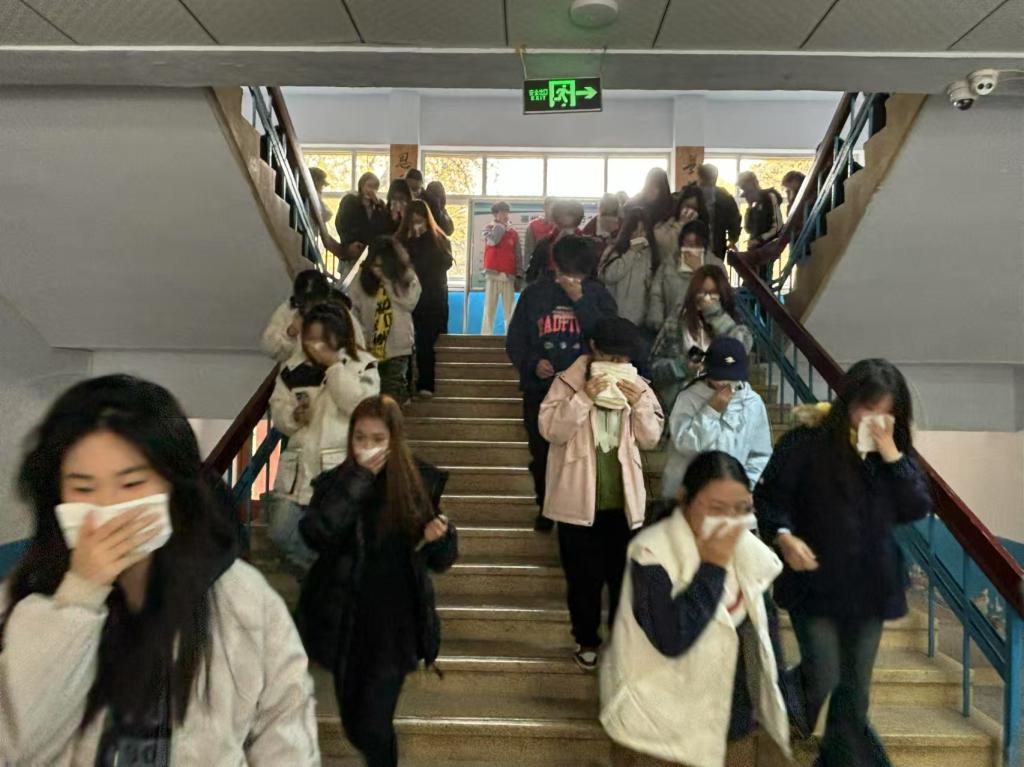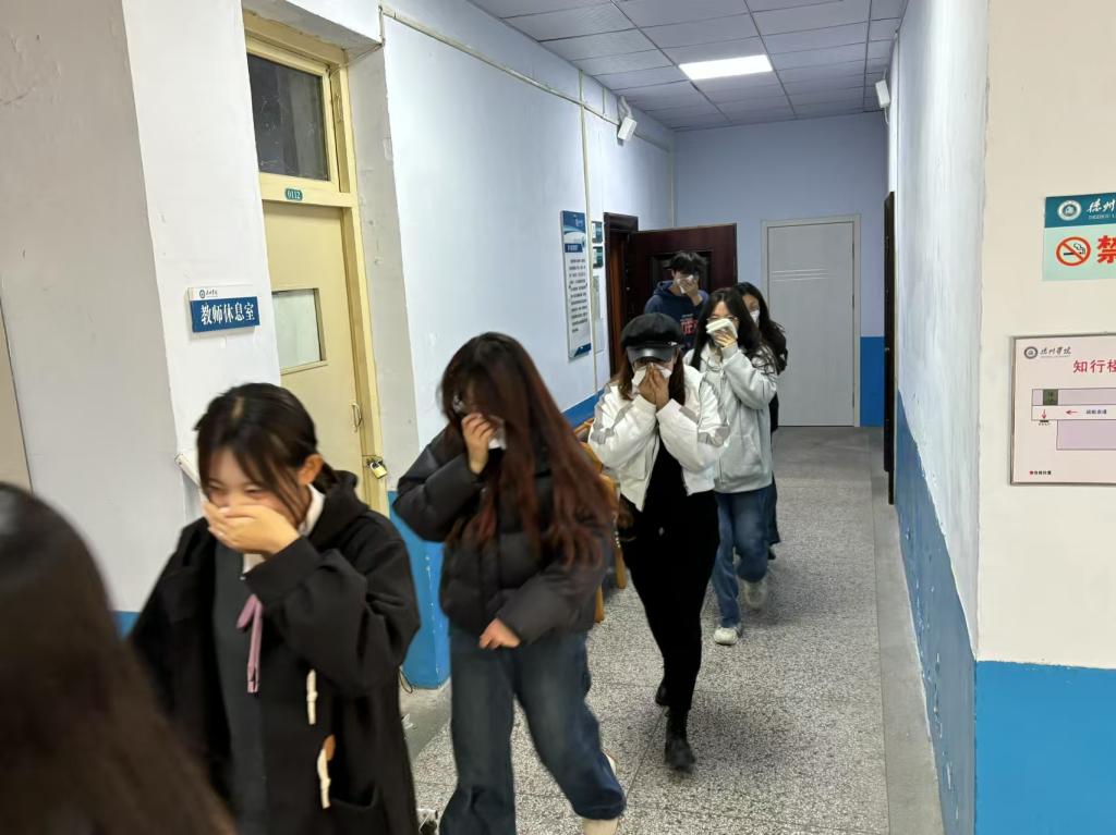 活动开始,活动负责人通过播放消防安全宣传片的形式,直观地向同学们讲解了消防安全知识,着重强调了消防安全在校园生活中的重要地位,让同学们深刻认识到火灾的危害以及预防火灾的必要性。活动过程中还安排了消防演练,随着火灾警报响起,同学们迅速地做出反应,严格听从负责人指挥安排,用湿毛巾捂住口鼻,弯腰低姿沿着安全疏散通道有序撤离。在疏散过程中,同学们始终保持冷静,彼此相互配合;志愿者们各司其职,在各个关键位置积极引导疏散方向,帮助维持秩序,确保疏散工作顺利推进。