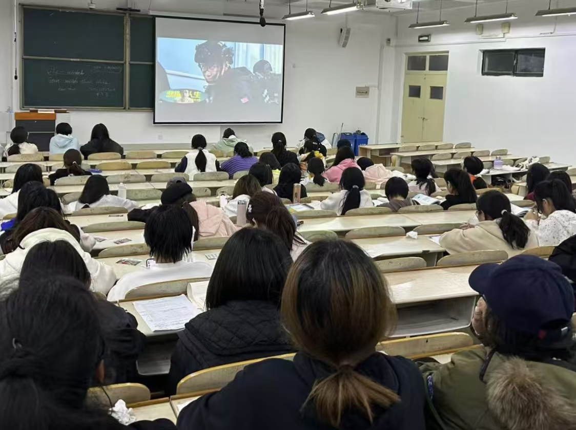 观影活动开始,志愿者播放了一部经典红色影片:《地雷战》。影片主要描述的是在1942年,胶东抗日根据地的人民群众在中国共产党的领导下,运用地雷战术抗击日本侵略者的故事。每名同学都在全神贯注地观看,他们从影片中深刻感受到了革命先辈们为国家和民族无私奉献的伟大精神。大荧幕上,残酷的战争场景、先辈们坚定无畏的眼神、为理想和正义不屈不挠的抗争画面让同学们深刻体会到,如今的幸福生活是无数革命先烈用鲜血和生命换来的,是来之不易的,使同学们更加坚定了投身教育事业的责任感和使命感,为培养下一代优秀人才、传承红色基因贡献力量。
