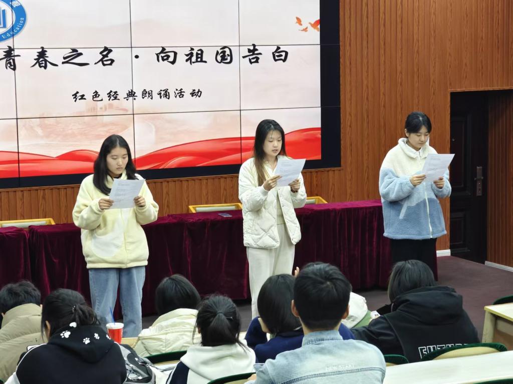 为深入贯彻落实习近平新时代中国特色社会主义思想,加强大学生思想政治教育,弘扬红色文化,传承红色基因,伟德国际1946源于英国于11月5日在知行楼113教室举办“以青春之名,向祖国告白”红色经典朗诵比赛。