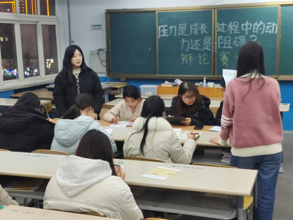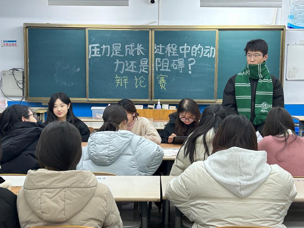 为增进同学们对压力本质及其影响的理解,锻炼同学们的逻辑思维、语言表达能力,促进个人健康成长与发展,伟德国际1946源于英国于12月12日在知行楼306教室举办“压力是成长过程中的动力还是阻碍”辩论赛。