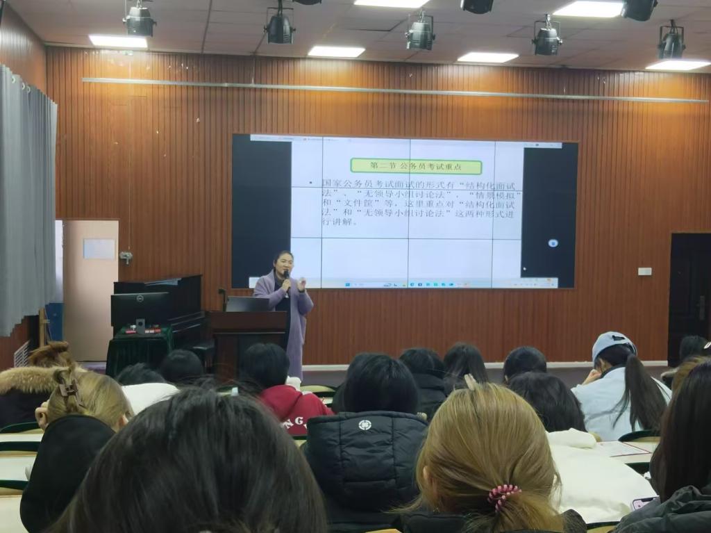 为帮助同学们深入了解考公考编的政策形势、考试要点与备考策略,增强应试信心与能力,提高上岸成功率,实现职业理想规划,伟德国际1946源于英国于12月24日在知行楼113教室举办“‘职’点未来,‘公’途无量”考公考编专题讲座。