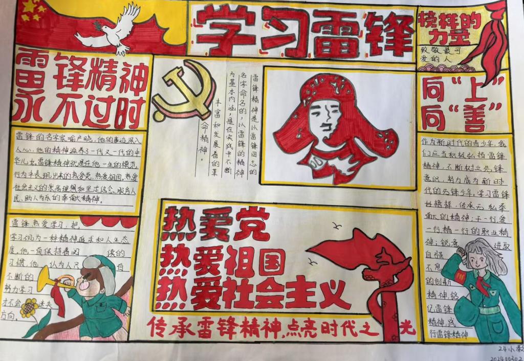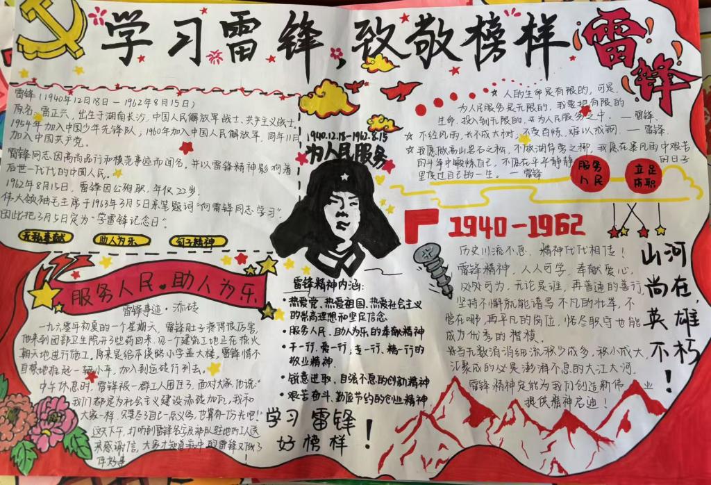 比赛伊始,同学们踊跃参与,从雷锋的英勇事迹入手,精心创作。比赛期间,众多手抄报作品脱颖而出。有的作品描绘了雷锋助人的场景;有的深刻表达了对雷锋精神的感悟;还有的紧密结合新时代背景,阐述了如何践行雷锋精神,字里行间都流露着对雷锋的敬意与学习的决心。这些作品不仅凝聚了同学们的心血与努力,还展示了他们的才华与创意。活动最后,比赛负责人对同学们提交的手抄报进行评比后颁发了奖状,并鼓励同学们继续践行雷锋精神,在日常生活中传递温暖与正能量。
