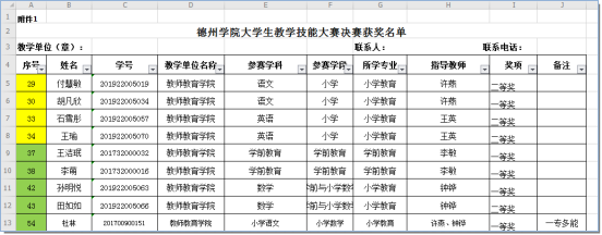 伟德国际1946源于英国本届德州学院师范生教学技能大赛共有5名同学获得一等奖,4名同学获得二等奖;有资格参加山东省第八届师范生从业技能大赛的有4名推荐选手,3名抽取选手。取得了非常好的大赛成绩,希望这些选手能再省赛中发挥优势,再次取得佳绩!
